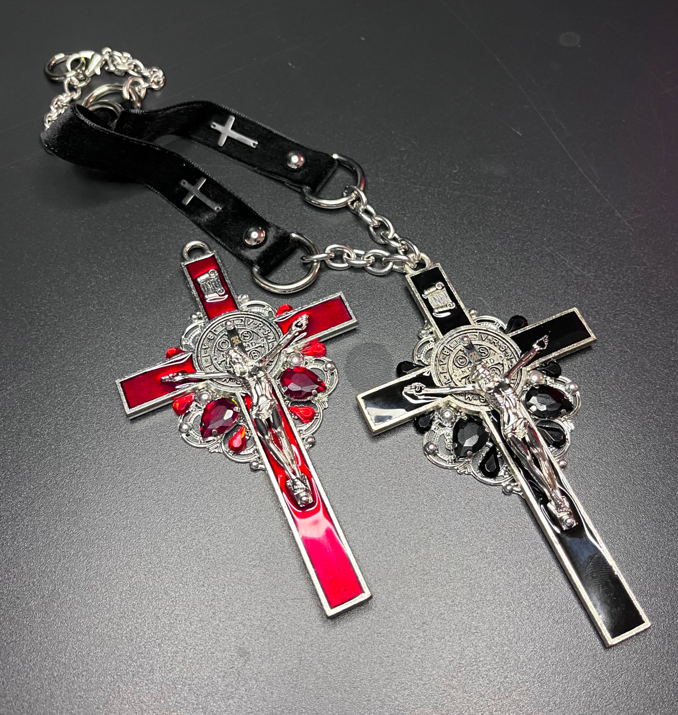 Holy Black Mass necklaces available in all 5 colors: Black, red, blue, pink, and white. This is A SILVER HARDWARE VERSION.