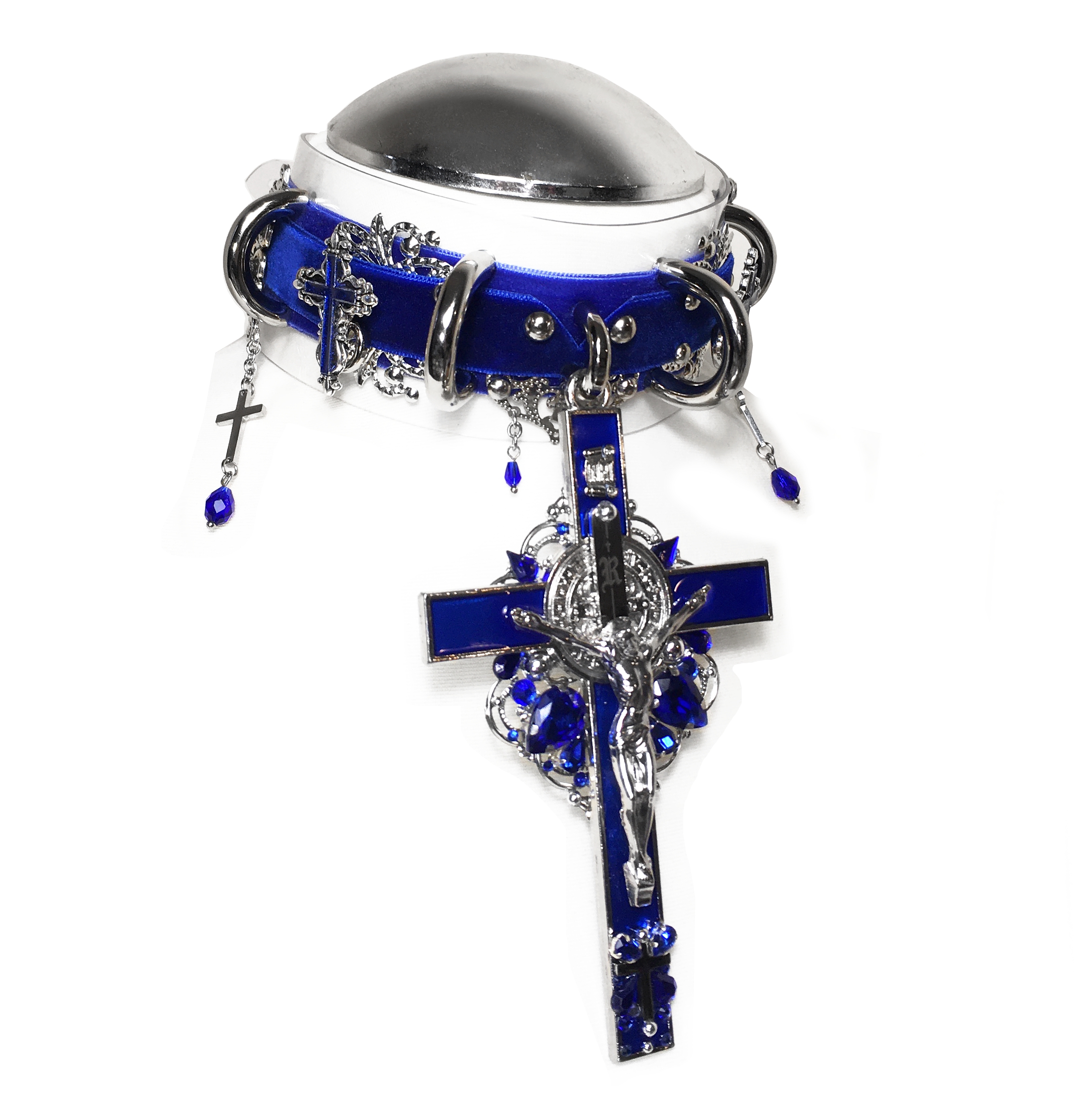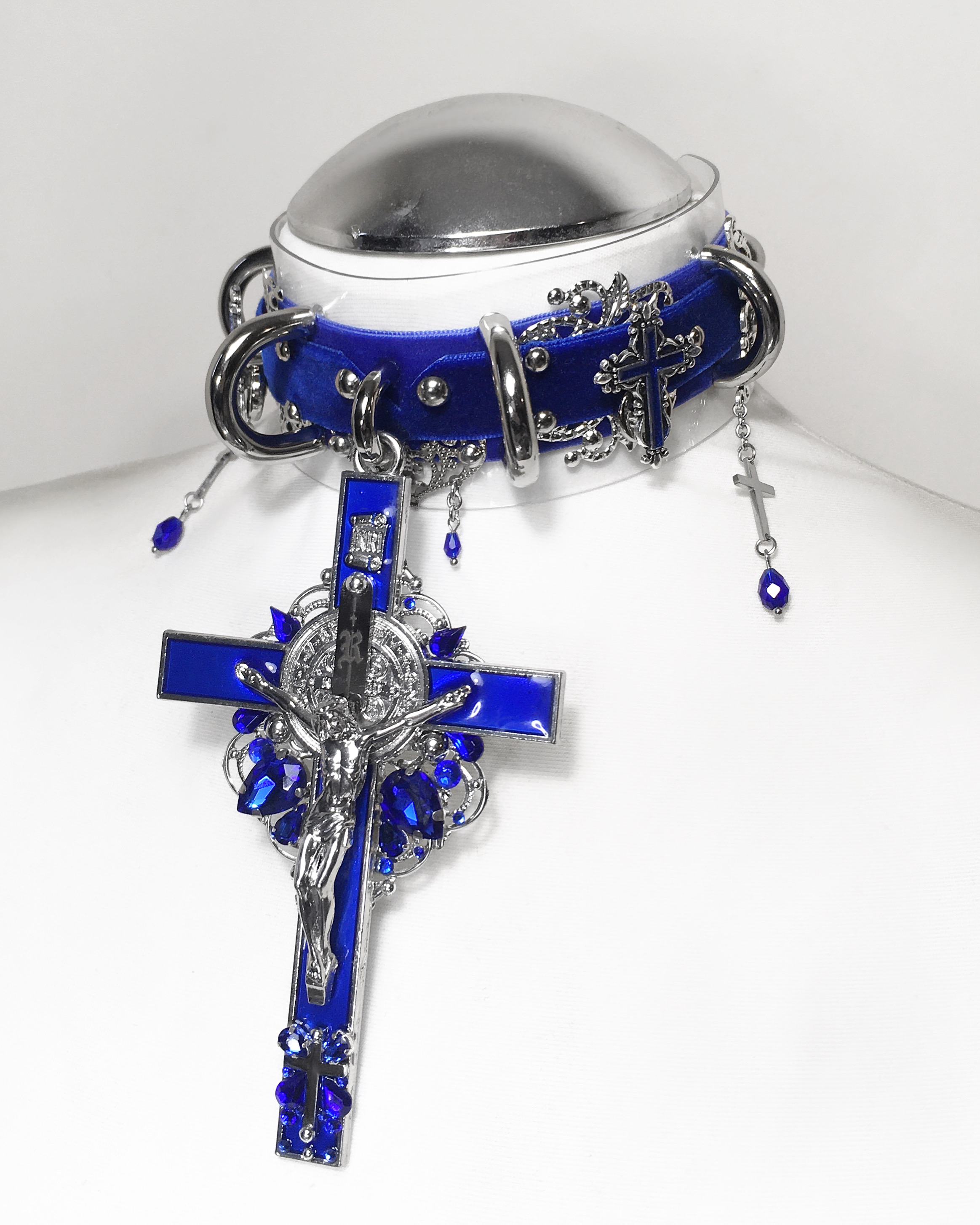 Made with an elegant base of a HOLY SHIT design, with the added edge of additional hardware and stainless steel cross charms. This deep blue reiteration of the HBM design with special decor and extra stainless steel details will bring out your most iconic dix self.