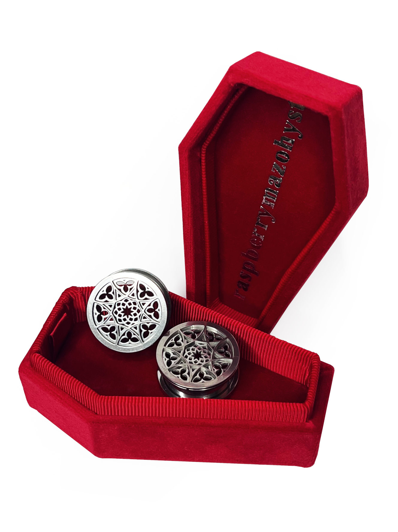 A beautiful jewel piece for the most ultimate churchcore girlies! Available in 8 sizes for all stretched-ear enthusiasts of ll things gothic architecture.